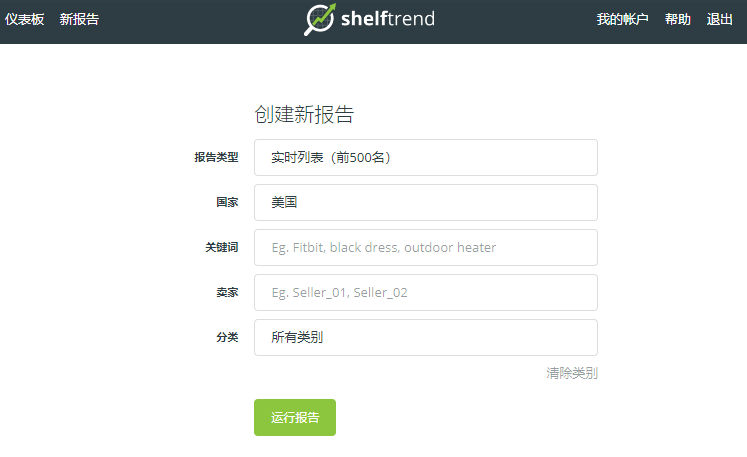 登录账号或者注册账号。点击顶端目录或屏幕右上方的“新报告”,进入创建新报告的页面。