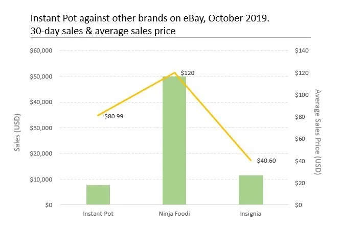 Although Instant Pot initially set the standard for the multi-cooker craze, competitors like Ninja and Insignia have been quick to broaden product features and price ranges to appeal to different buyer segments to the point where they are already out-selling Instant Pot on eBay.